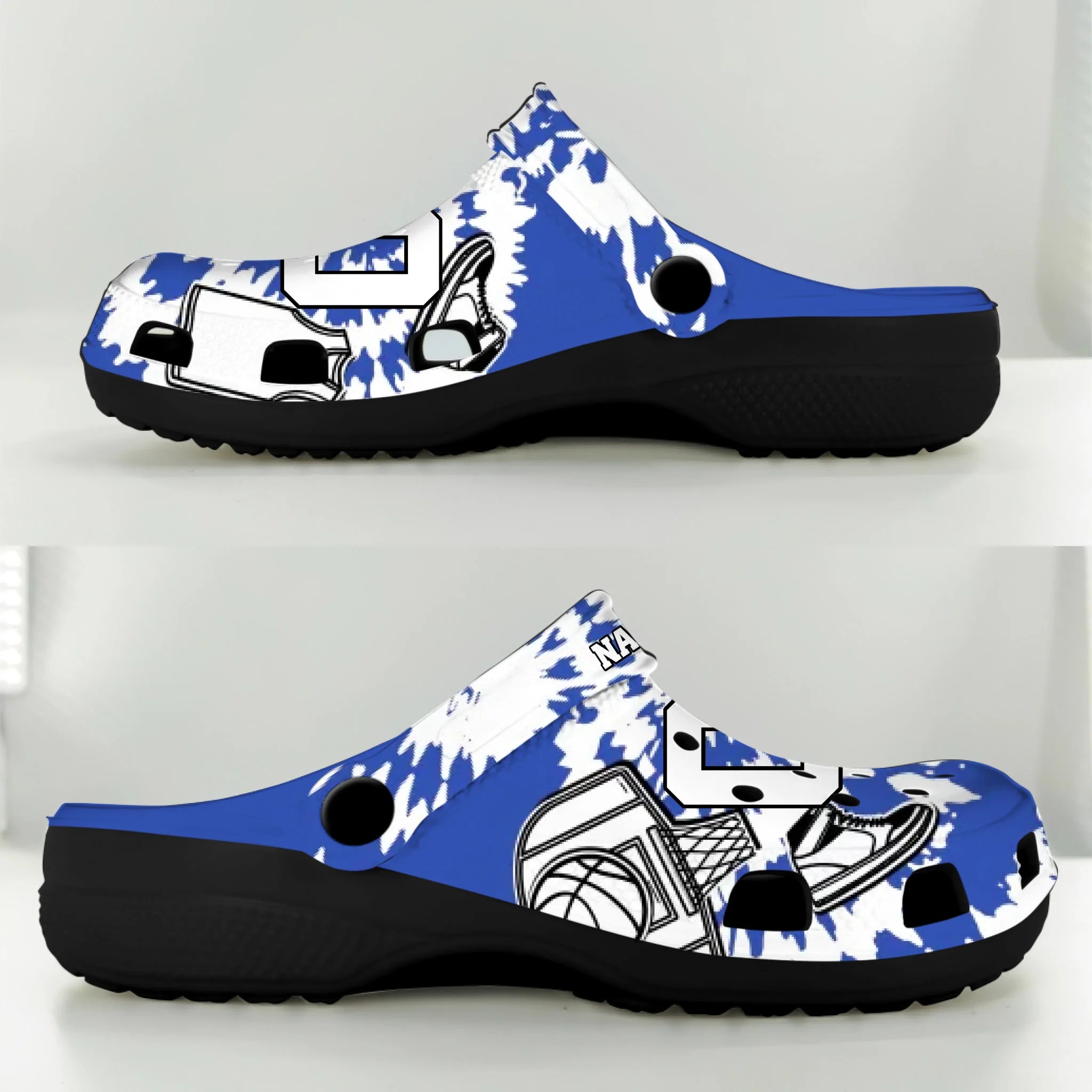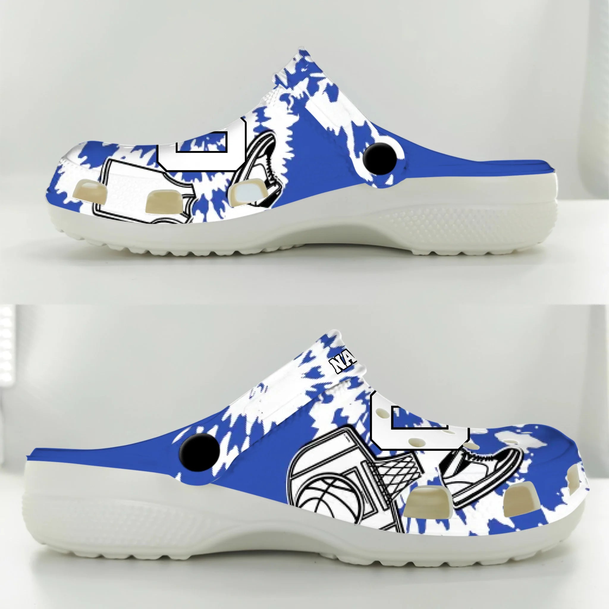 Blue Tie-Dye Basketball Clogs 01