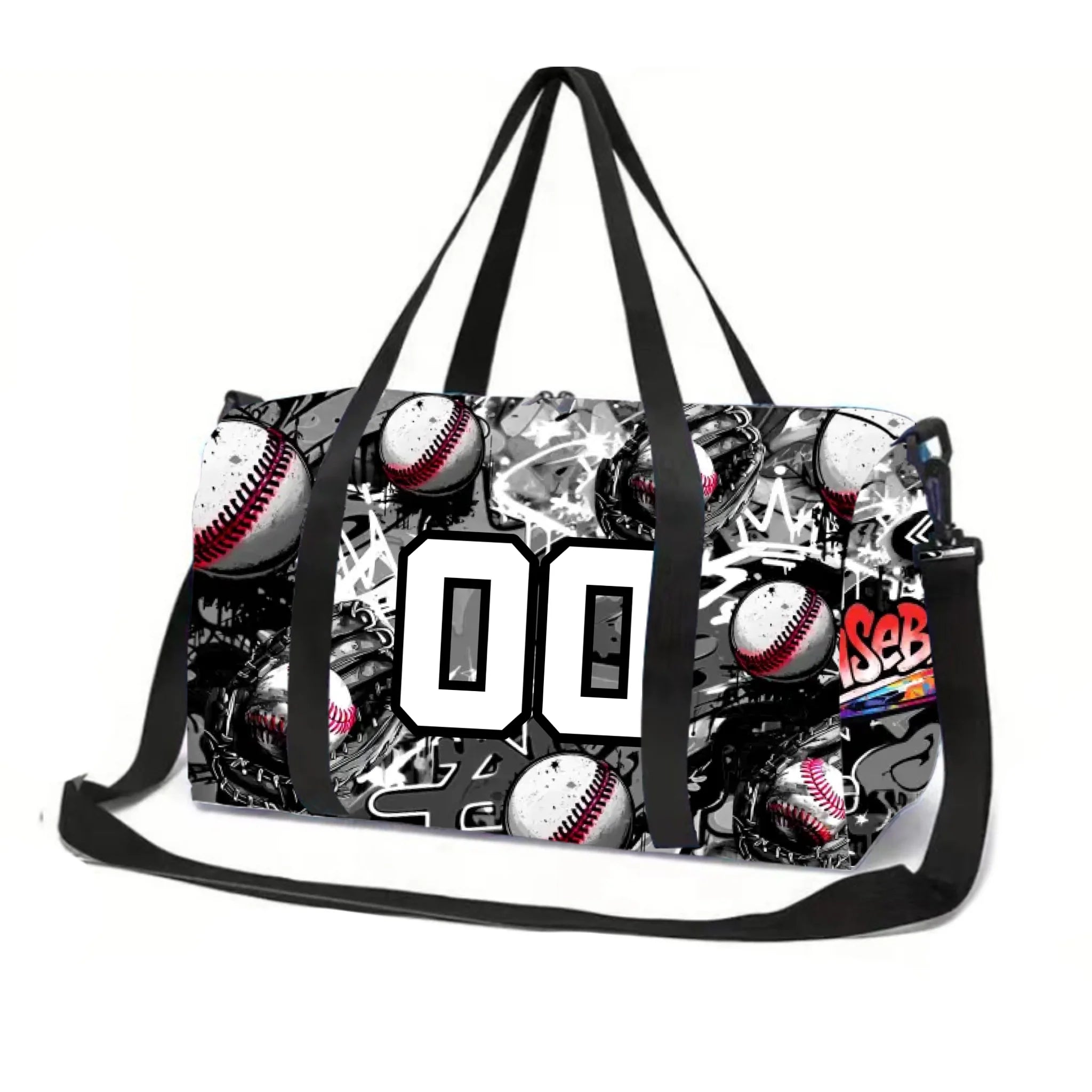 Black Graffiti Baseball Duffle Bag 01