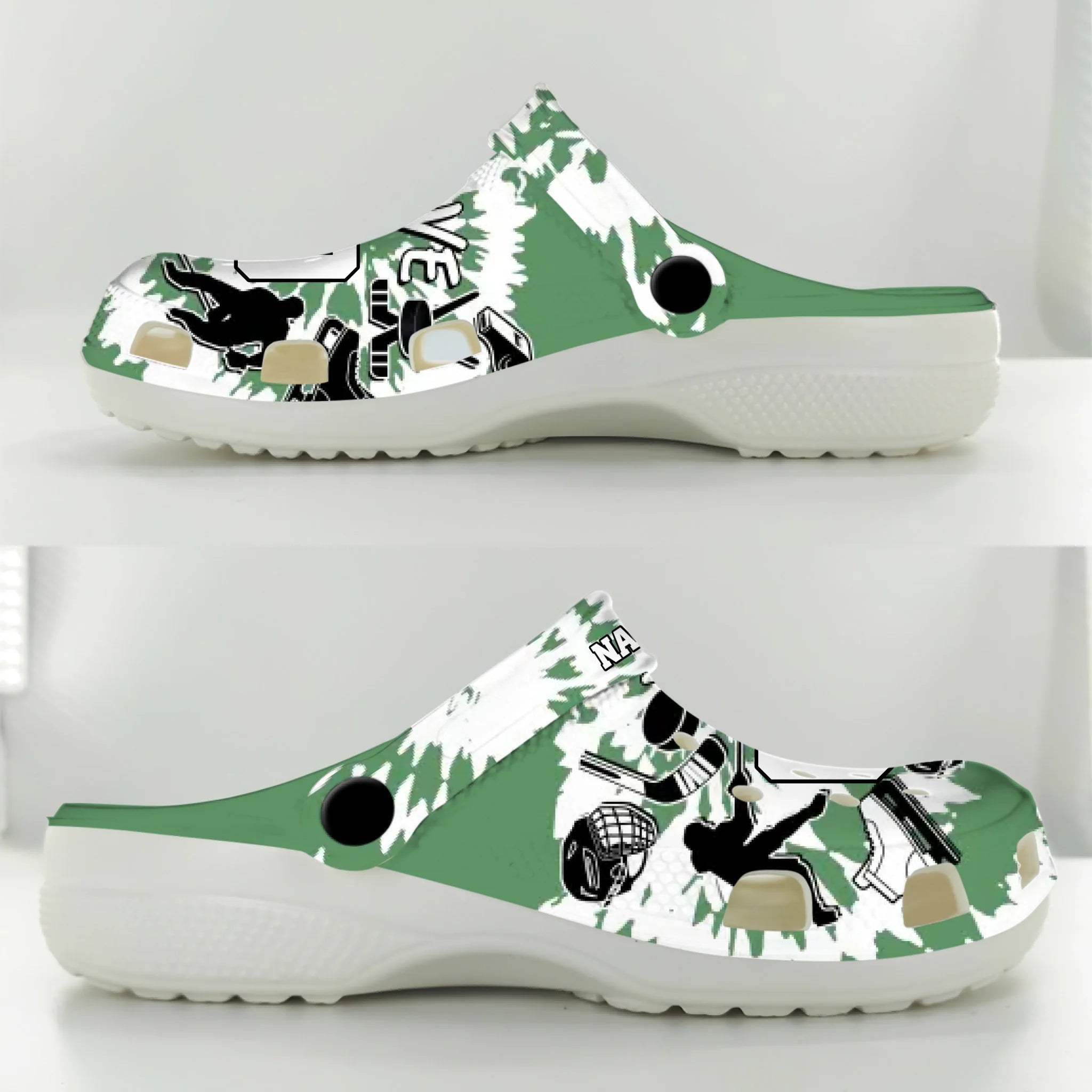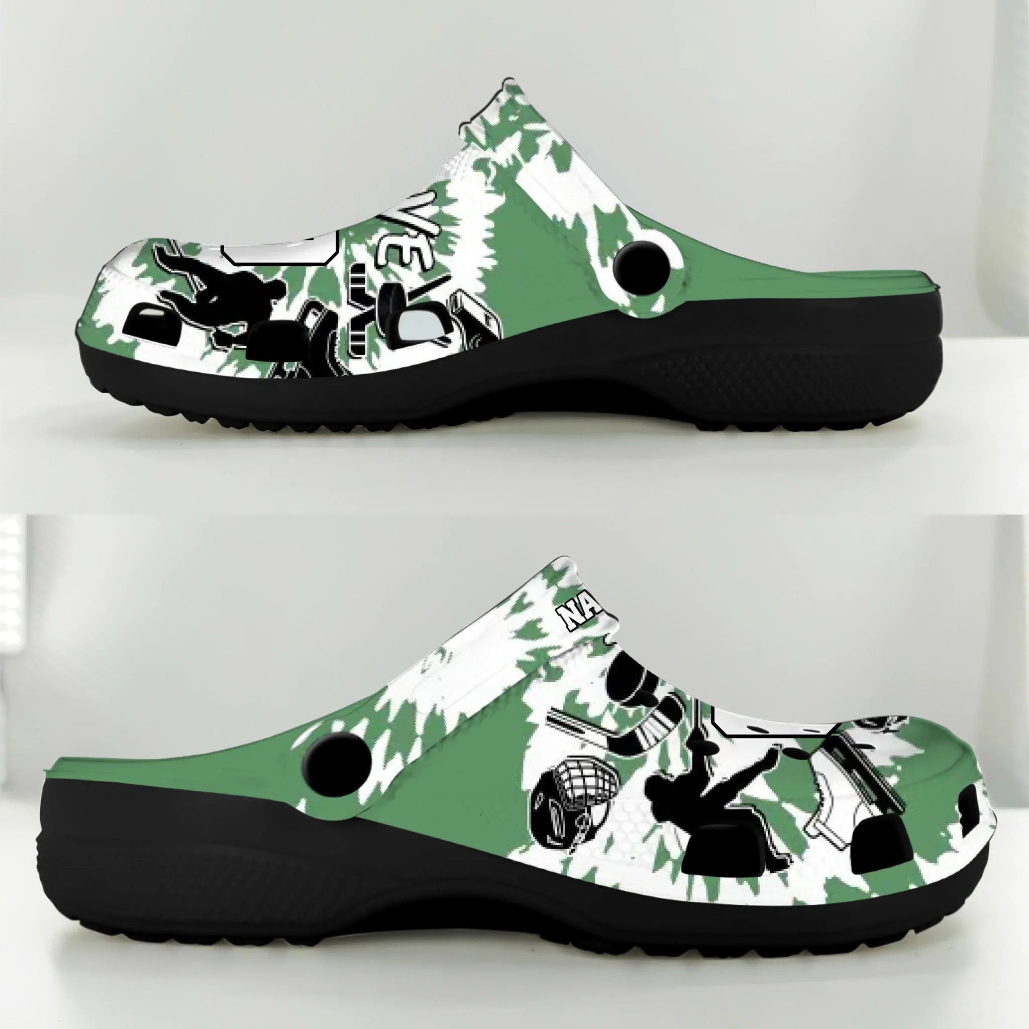 Green Tie-Dye Ice Hockey Clogs 01