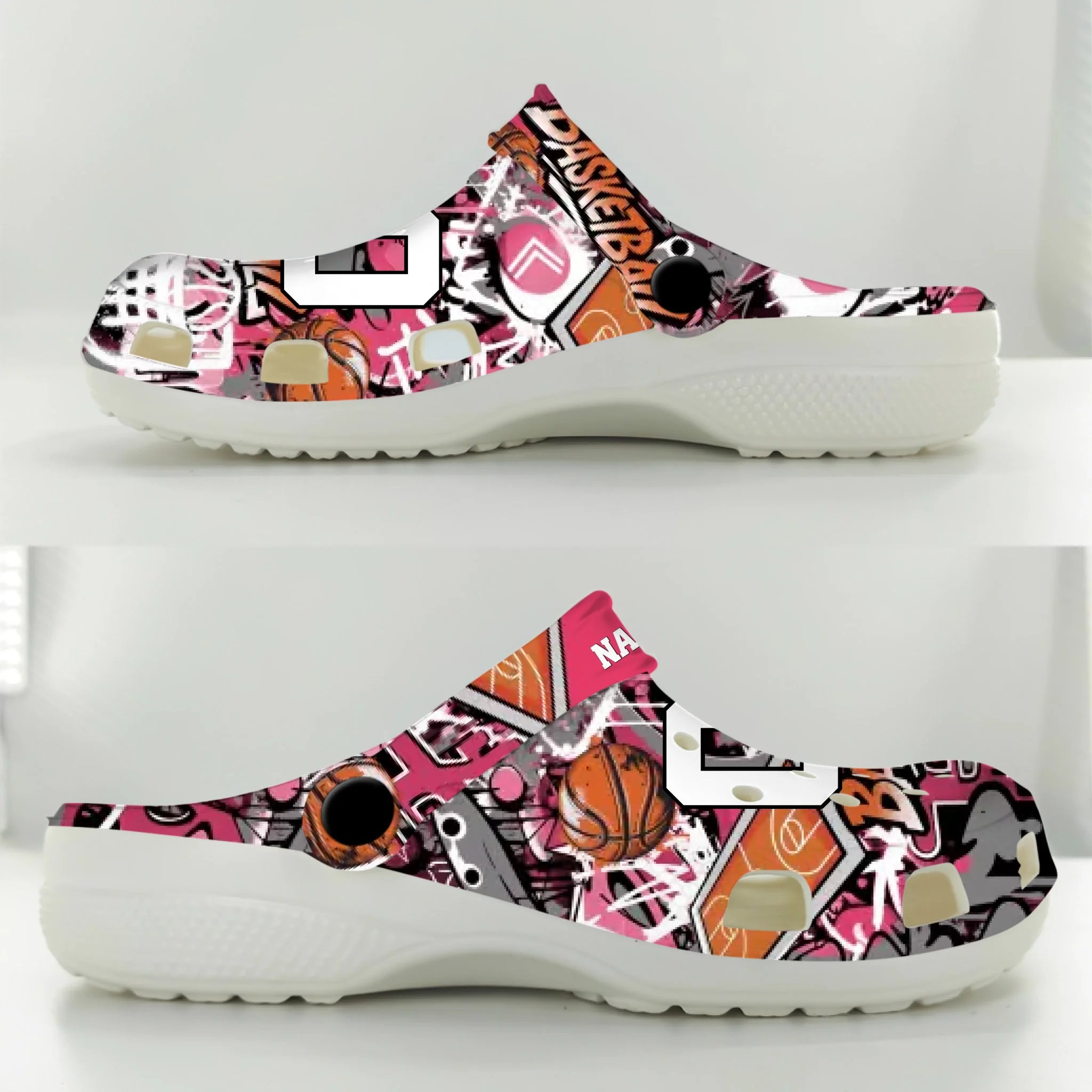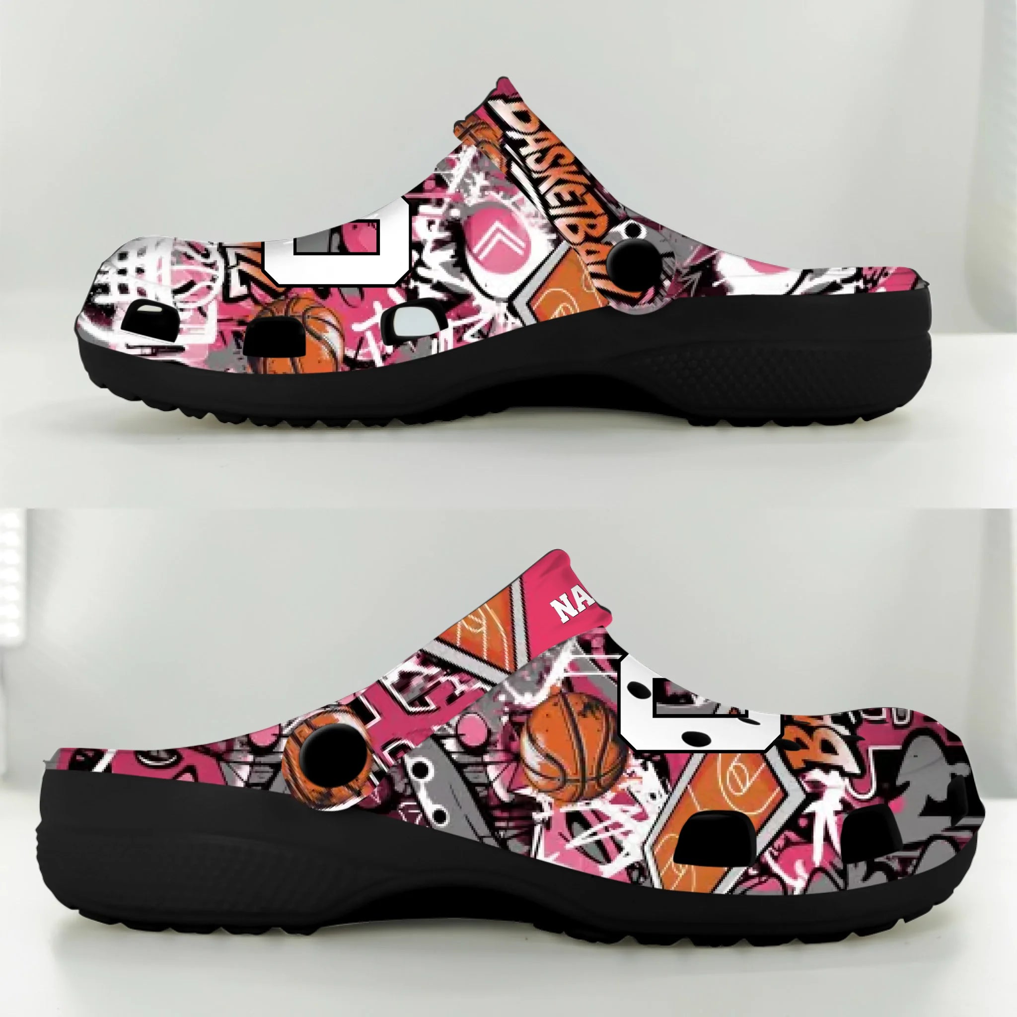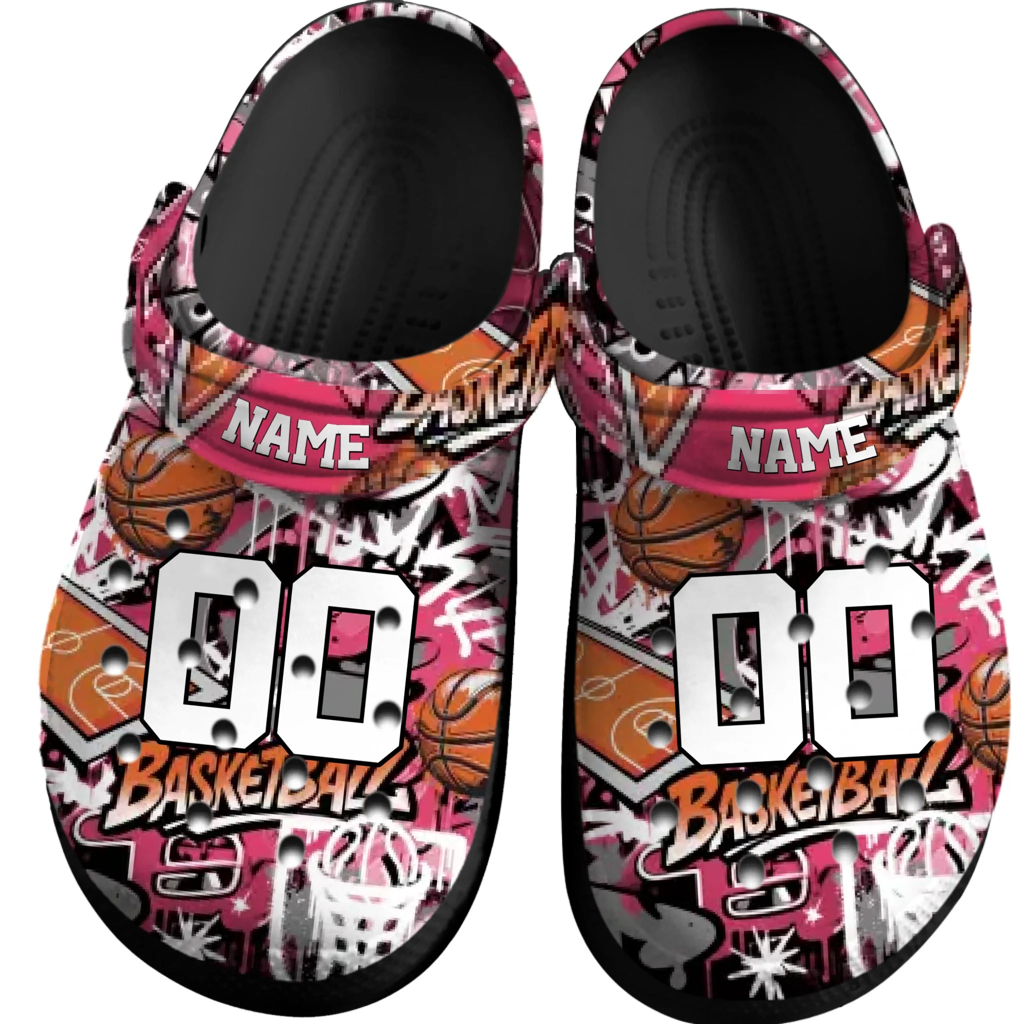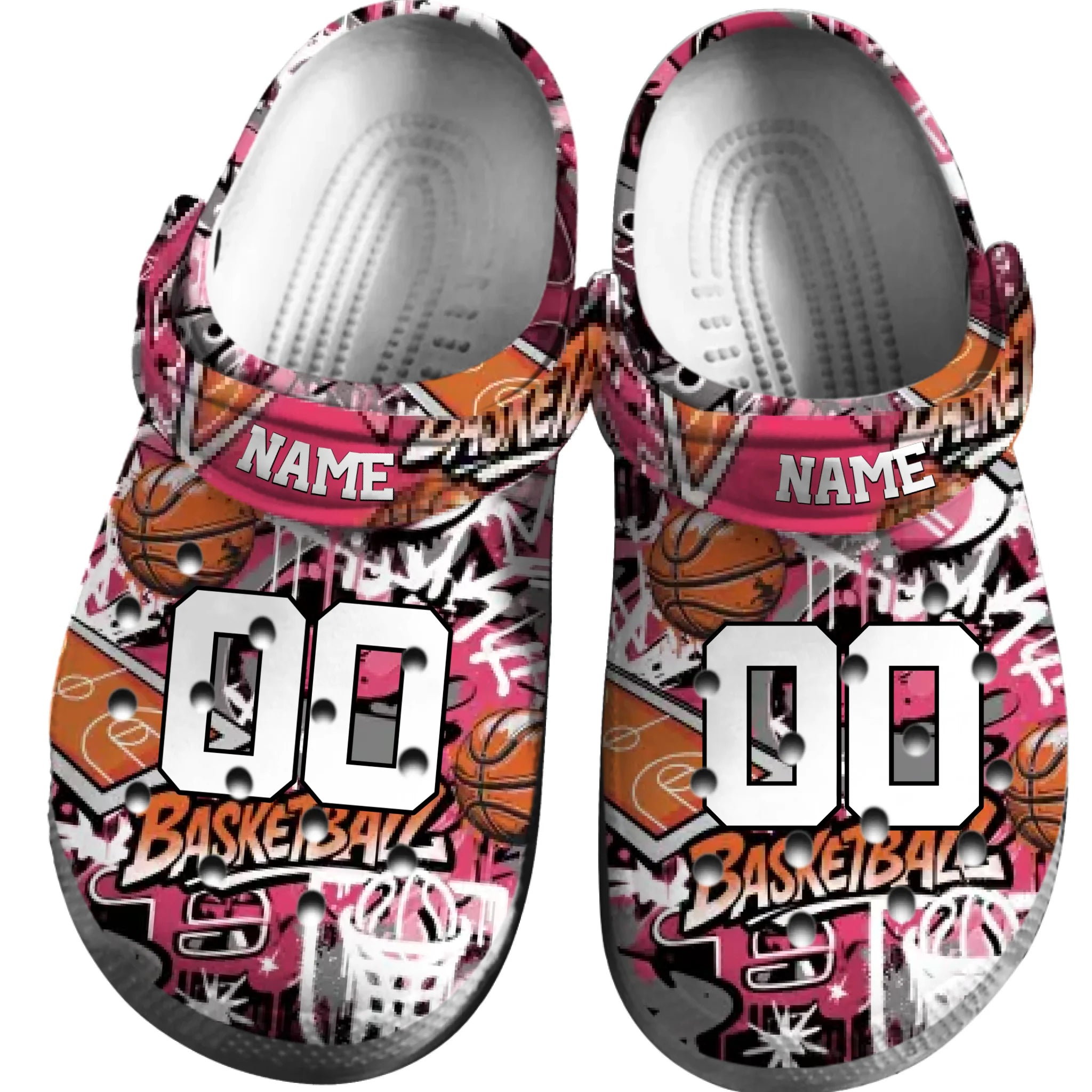 Pink Graffiti Basketball Clogs 01