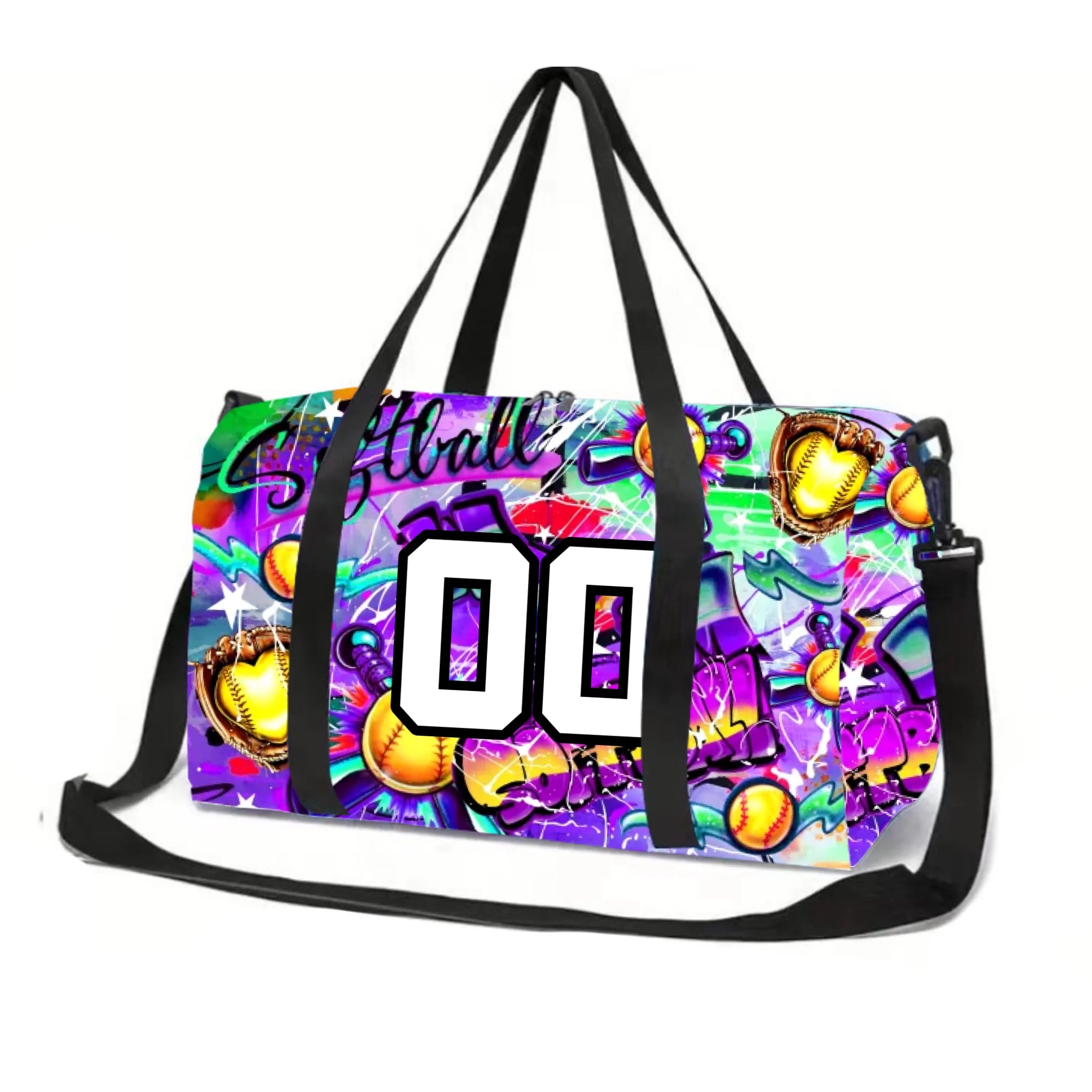 Purple Graffiti Softball Duffle Bag 01